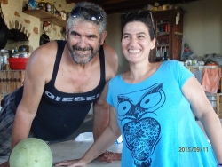 Einige Stunden später hat die junge Eleni Tripalitsioti ihre amerikanischen Gäste zu einem Ort im Binnenland von Paros gebracht. Sie muss umdisponieren. Ein Termin ist ausgefallen. So werden alle zum Grundstück ihres Vaters gefahren. Dort steht er gemeinsam mit seinen Freunden und stampft mit nackten Füßen frisch geschnittenen Wein. Die 70jährige Susanna darf mit stampfen und ist am Ende ganz berührt von der Offenheit mit der sie aufgenommen und empfangen wurde.